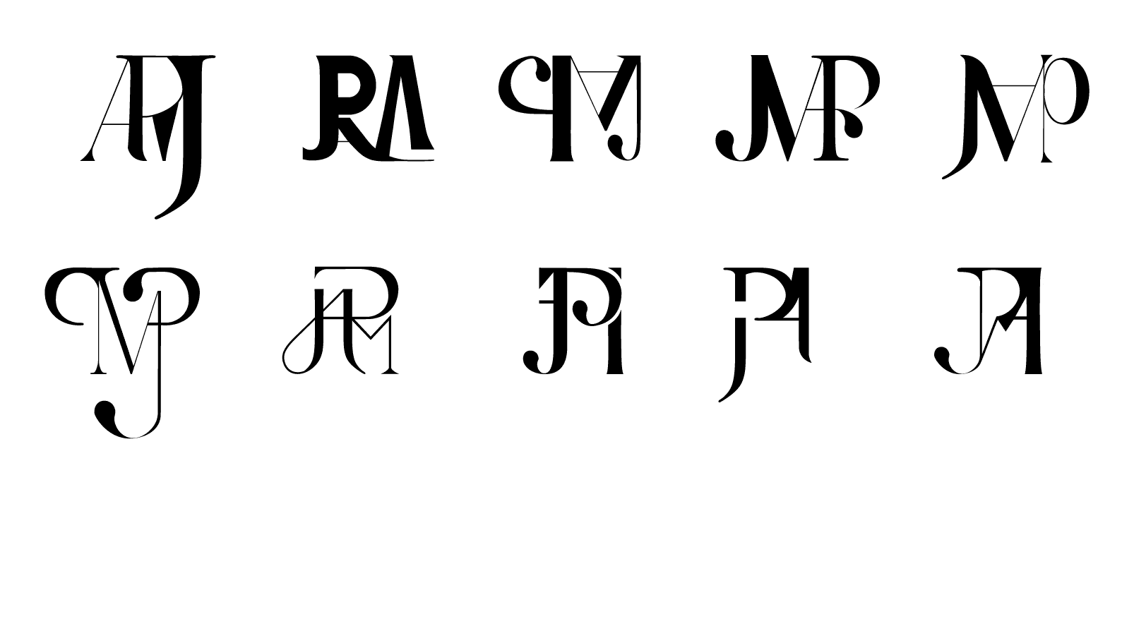 Creación de monogramas a partir de las iniciales de mi nombre, construyendo un logo en óptimas condiciones, con fusiones tipográficas, y añadiendo un estilo propio.
