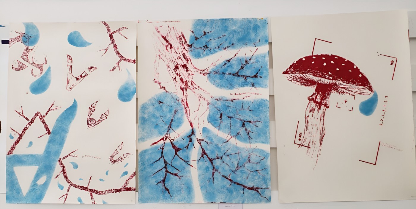 Afiches hechos a mano con las técnicas de serigrafía y esténcil basados en el concepto de lo orgánico y principios fundamentales del diseño.