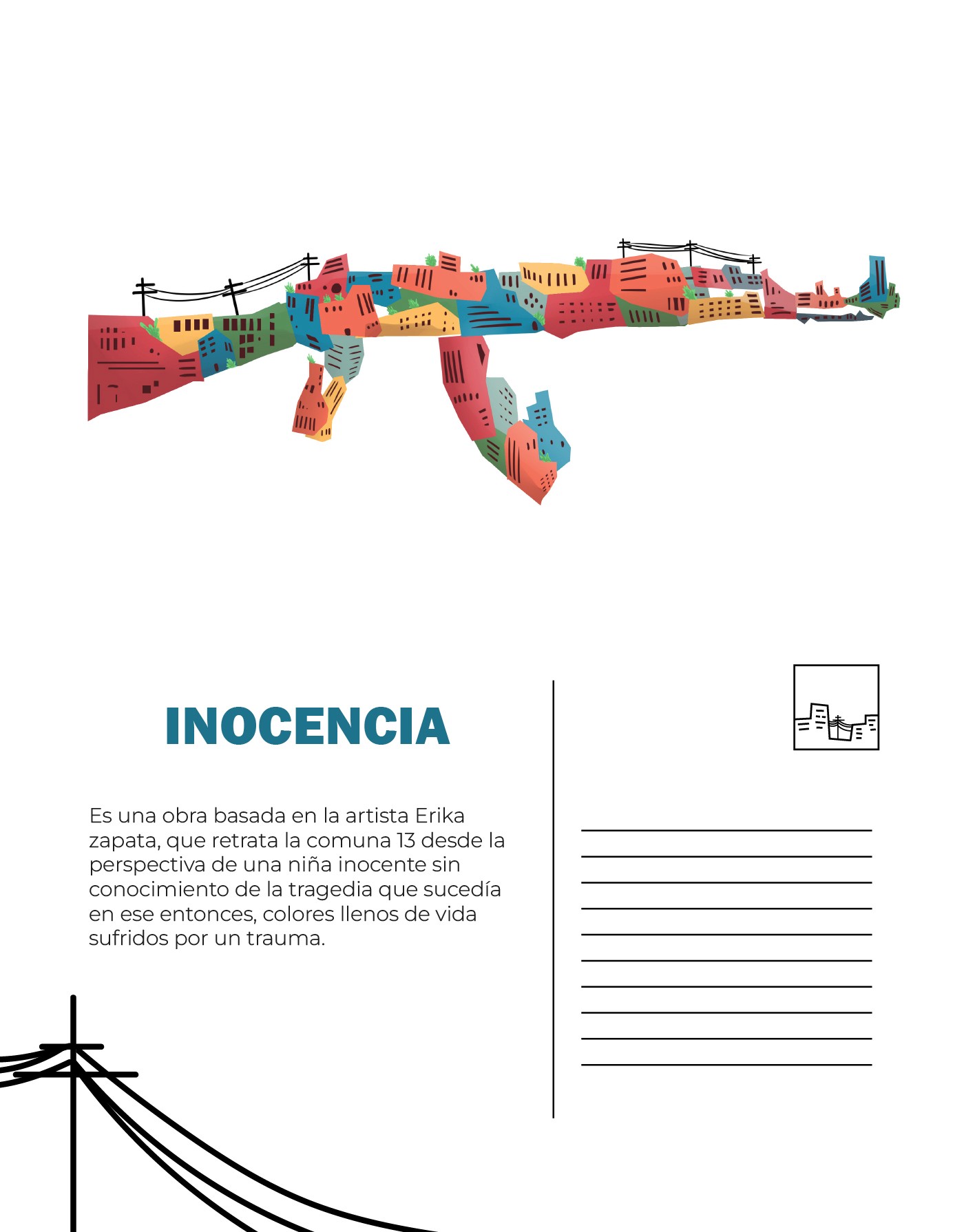 Postal conceptual resultado de hacer una salida de campo a la comuna 13 de Medellín en el curso de semiótica.