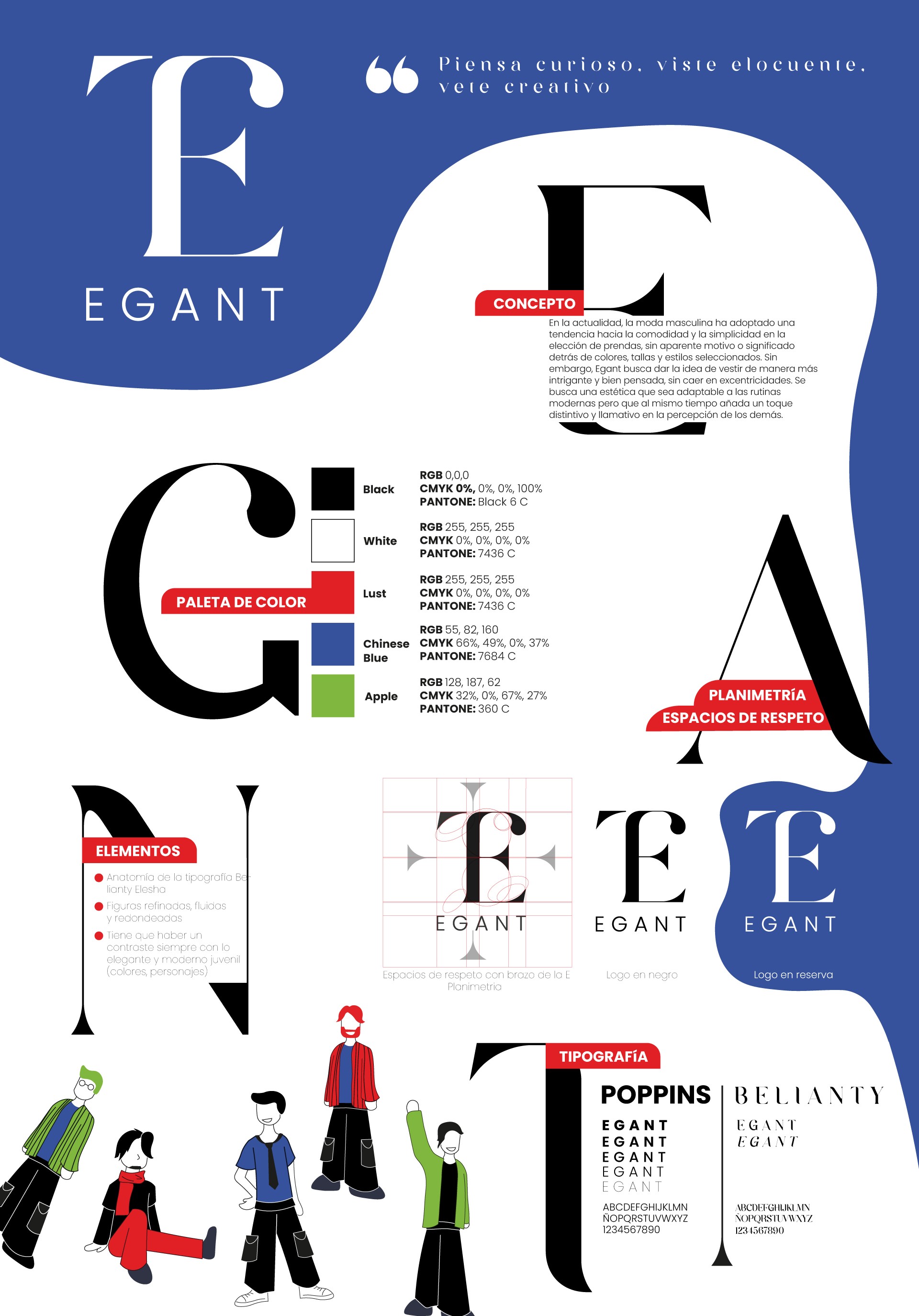 Creación de marca textil con la fusión de los conceptos, ropa y hombre. Egant busca un estilo elegante y casual al mismo tiempo, ofreciendo formas de vestir sencillas pero atractivas y poco convencionales, sin llamar mucho la atención.